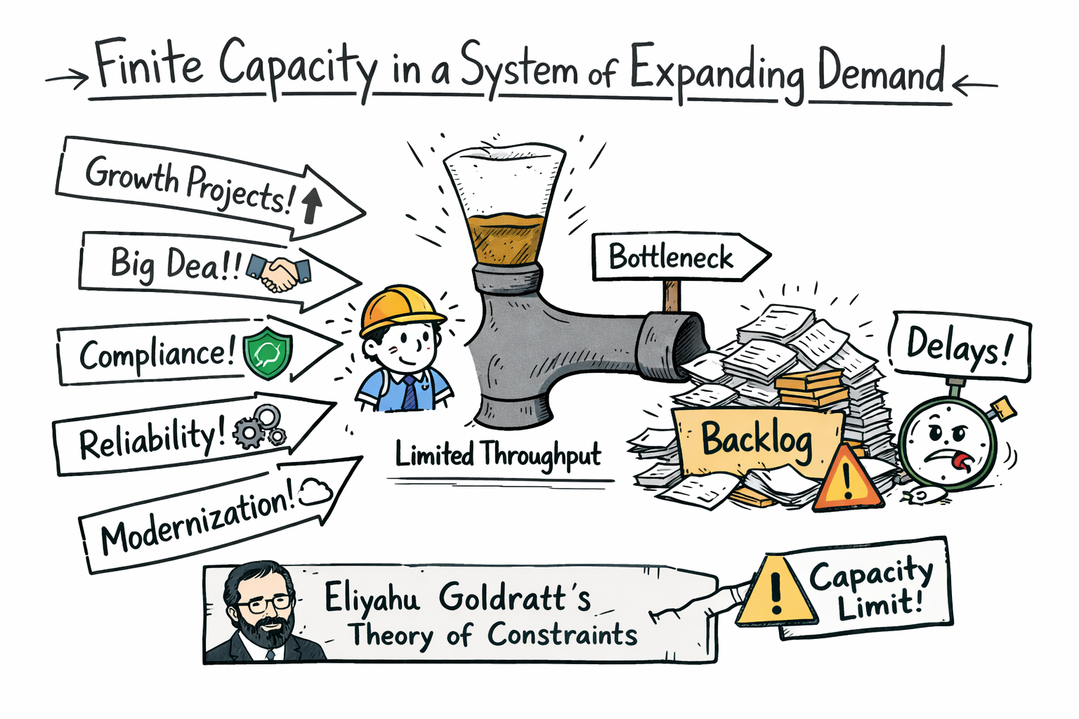 However, engineering throughput is bounded. The Theory of Constraints, introduced by Eliyahu Goldratt, provides a useful systems lens: in any production system, throughput is limited by its bottleneck. In software organizations, engineering frequently becomes that constraint.