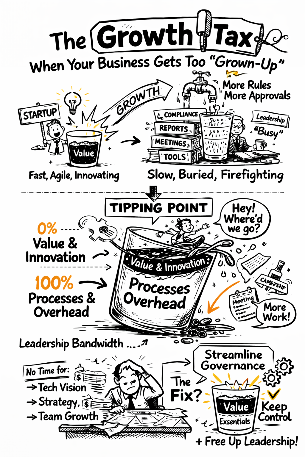 When process expansion is not accompanied by intentional simplification, it gradually dominates leadership bandwidth as governance complexity compounds over time.