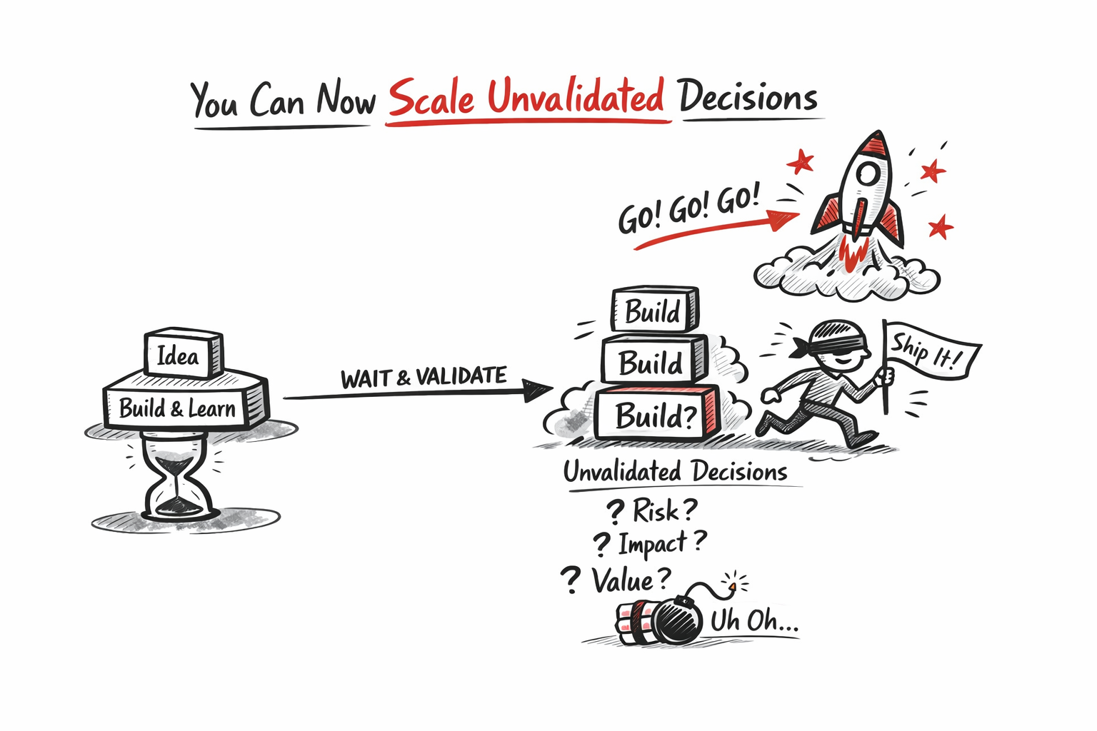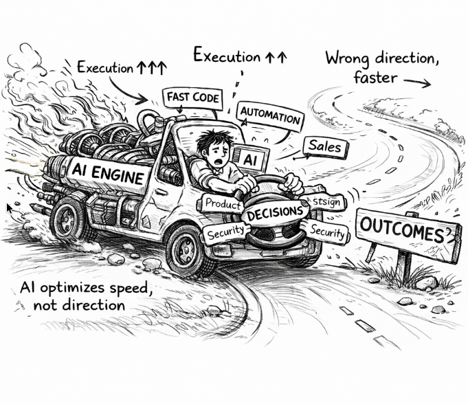 What used to be a sequence of build → learn → adjust is quietly turning into build → build → build. We are not just scaling bad decisions. We are scaling unvalidated ones. And the more we accelerate execution without closing that validation loop, the weaker the connection becomes between what we build and the value it creates.